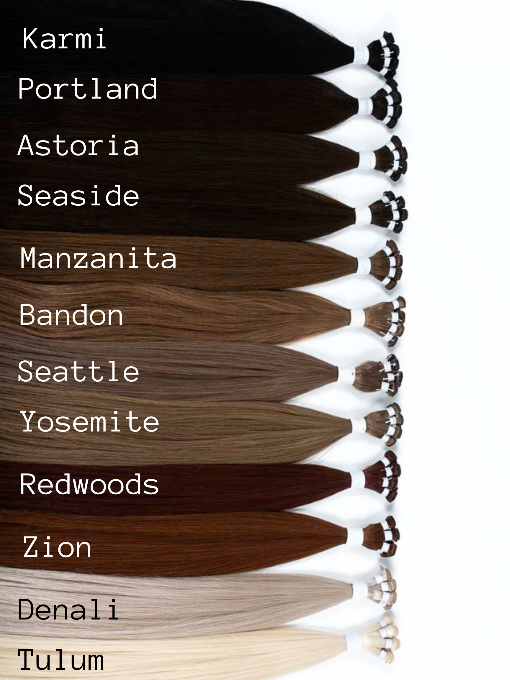 (darkest to lightest)- Karmi, Portland, Astoria, Seaside, Manzanita, Bandon, Seattle, Yosemite, Redwoods, Zion, Denali, and Tulum