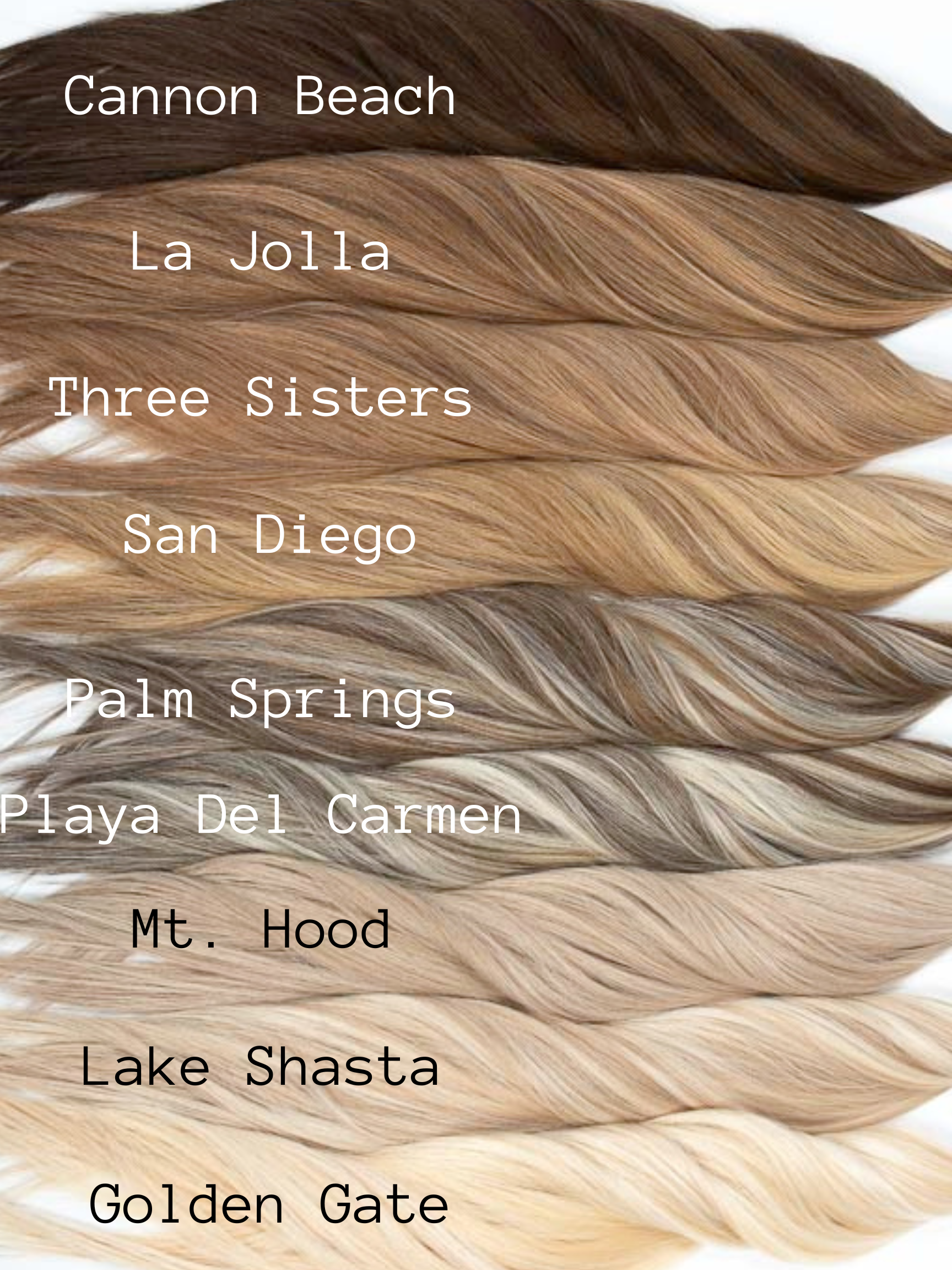 (darkest to lightest)- Cannon Beach, La Jolla, Three Sisters, San Diego, Palm Springs, Playa del Carmen, Mt. Hood, Lake Shasta, and Golden Gate